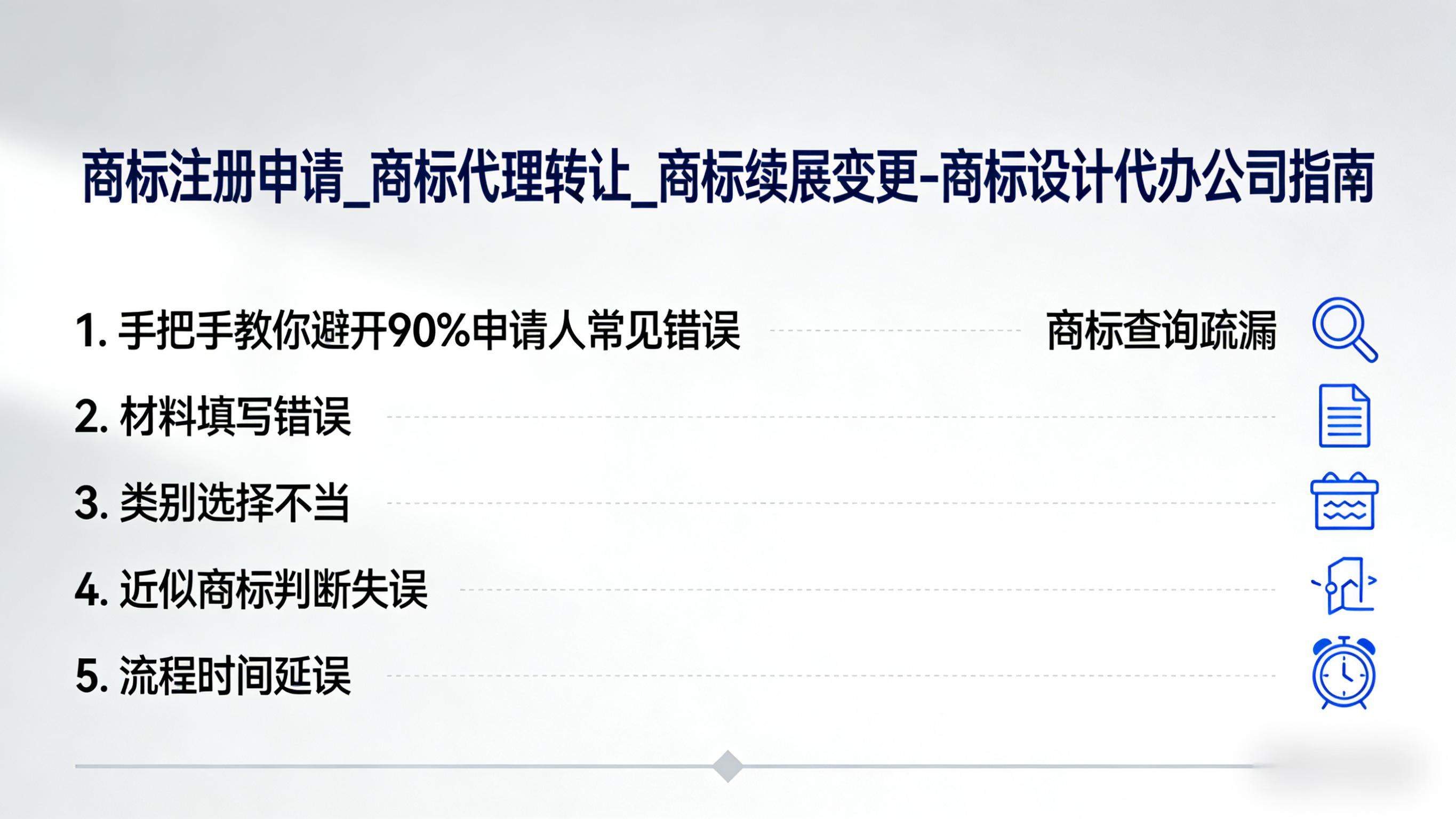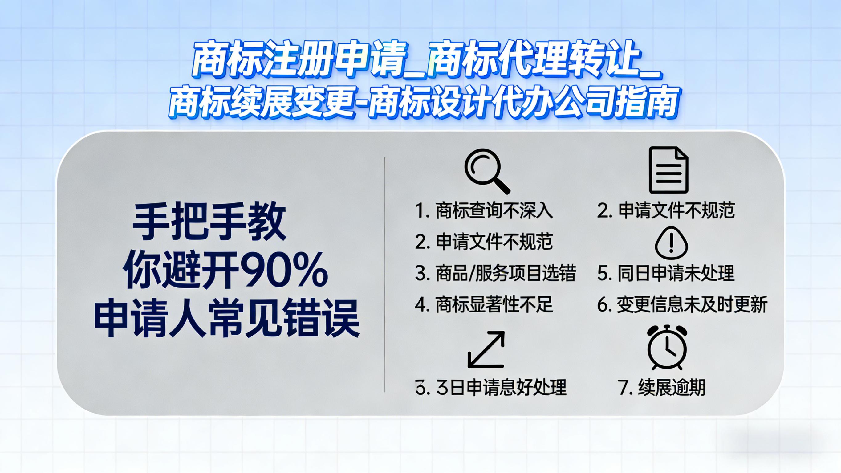 Q: 设计中应避免什么?A: ① 过于复杂(小尺寸失真);② 模仿知名商标;③ 使用描述性词汇;④ 违反公序良俗