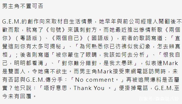 不过,为何邓紫棋自己不回应、Mark又为何闪烁其词?让人浮想联翩。